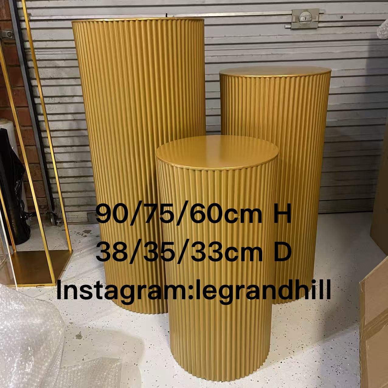 3pcs gold iron ripple plinths (90/75/60cm H)