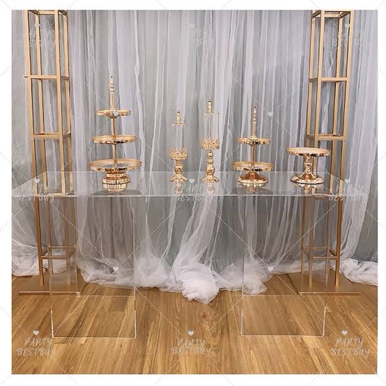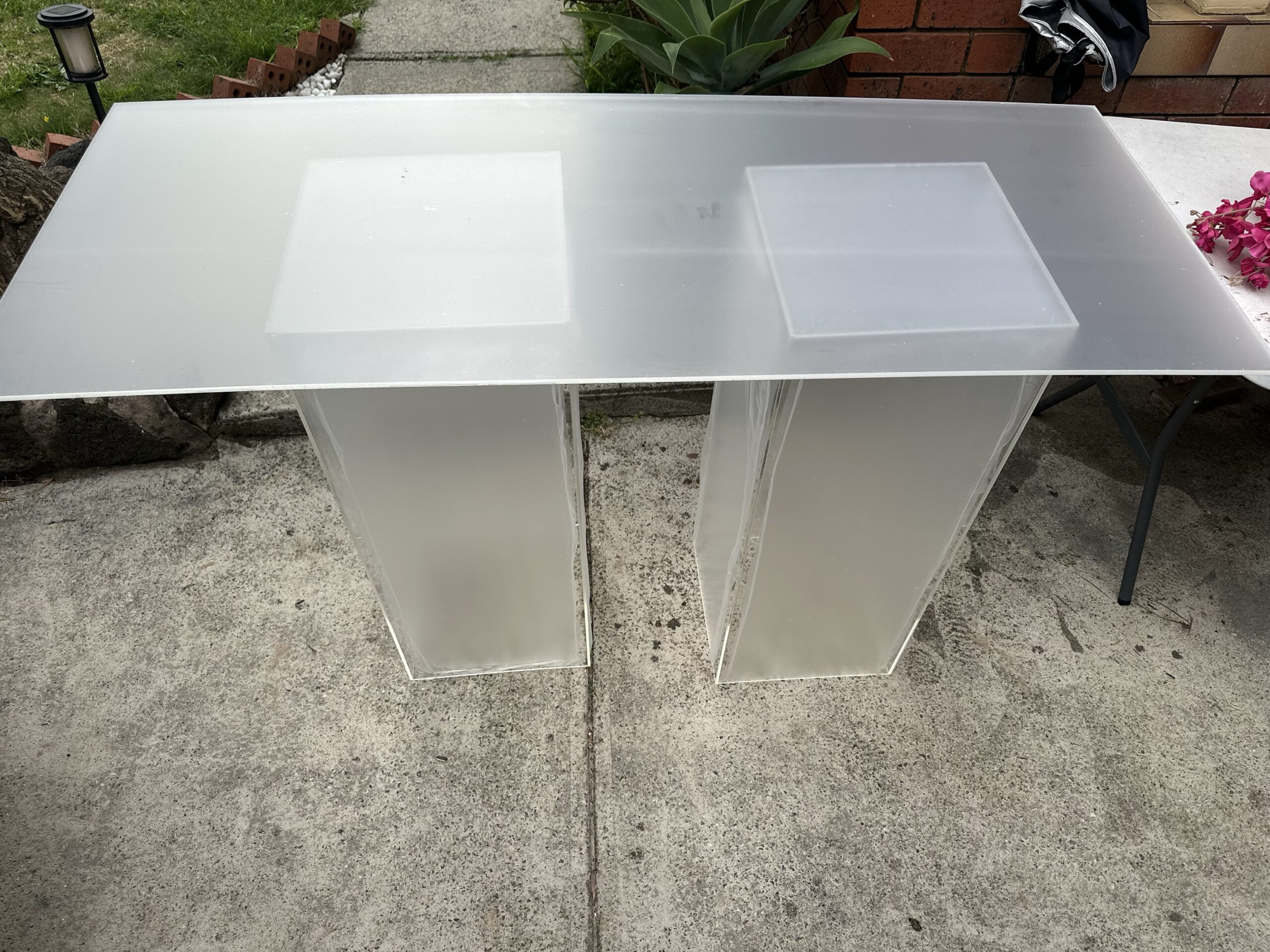 80cm H clear/ghost table (top board180*60cm;plinths 35*35*80cm)